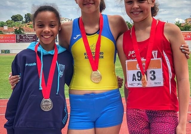 El pasado sábado en Arganda del Rey se celebró el Campeonato de Madrid de Combinadas Alevín, donde nuestra atleta LUCIA RODRÍGUEZ se proclamó CAMPEONA DE MADRID DE COMBINADAS gracias a sus 8.7 sg. en 60 m lisos que suponen 530 puntos, a los 9,24 m en peso 480 puntos y a 4,07 m en longitud que la dieron 324 puntos, lo que hizo un total de 1334 puntos, que la llevo a lo más alto del pódium.