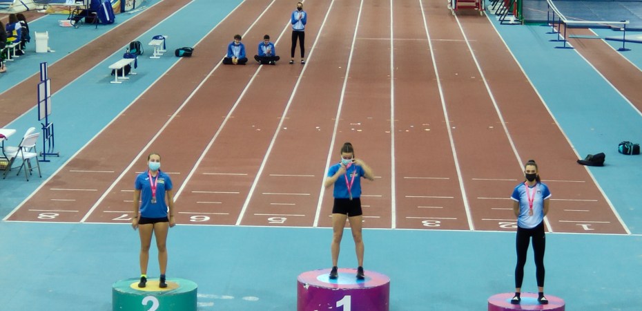 En la jornada del sábado tenía lugar la combinada sub18 donde en categoría femenina contábamos con CUATRO representantes, IRENE BRAVO con un total de 3441 puntos se proclamaba CAMPEONA DE MADRID DE PENTATLÓN SUB18, seguida en el pódium por LAURA MARTINEZ que con un total de 3384 puntos se hacía con la medalla de PLATA, logrando a su vez en la prueba de longitud un nuevo record de MADRID de la categoría al saltar 5,98 m, por su parte PILAR ARROYO lograba el QUINTO puesto con un total de 3134 puntos y en SEXTA posición se clasificaba DANIELA VACA con un total de 2878 puntos.